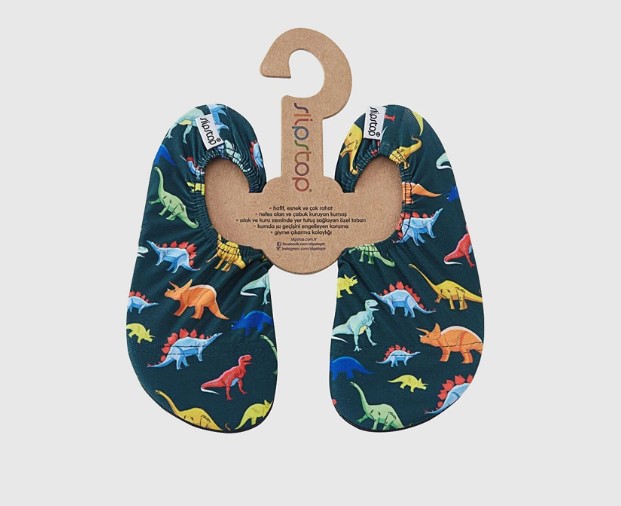 Tatillerde su sporu yaparken yaşanabilecek kazaları önleme için özel ayakkabılar kullanılmaktadır. Özellikle çocuklar zeminin ıslaklığı nedeniyle sıkça düşerler. Bunu önleme için Slipstop Multi terlik almalısınız. Üzerinde dinozor olan bu terlik çocukların hoşuna gider ve bu ürün tabanı kaymayı önlemektedir. Sarı, kırmızı, mavi ve turuncu dinozorlarla çocuklar istediklerini rahatça yapar. Miniklerin ıslak zeminde tehlikesiz eğlenir. Çok fazla seçeneği olan terlik modellerinin çocuğunuzun ayağına göre olması önemlidir.