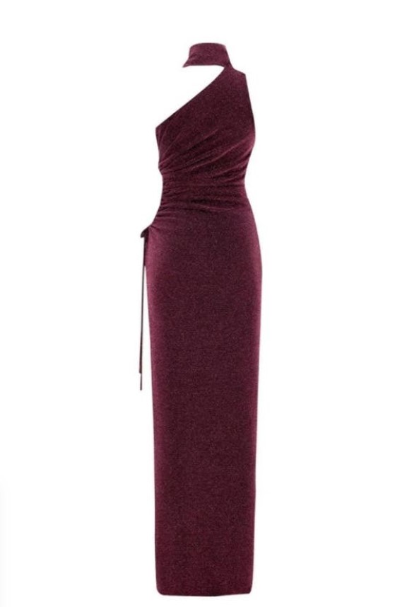 BUST2 rosa elbise, zarif ve etkileyici görünüm sunuyor. Tek omuzlu tasarımıyla dikkat çeken elbise, boyundan bağlama detayıyla da şıklığını tamamlıyor. Detay, üzerindeki simli kumaşla birleşerek ışıltılı etki yaratıyor. Yan taraftan dekolteli olması ise hem cesur hem şık görünüm sağlıyor.