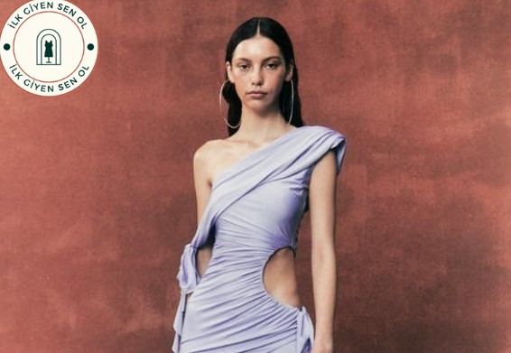 DE LA VALI eclair elbise modeli, modern ve şık tasarımıyla dikkat çekiyor. Elbisenin asimetrik yakası, özgün hava katarken omuz kuşakları da zarif detay olarak öne çıkıyor. Yan dikişleri büzgülü elbise, vücuda oturarak kadınsı siluet oluşturuyor. Önde yer alan yırtmaç detayı ise hareket serbestliği sağlarken aynı zamanda cesur görünüm kazandırıyor.